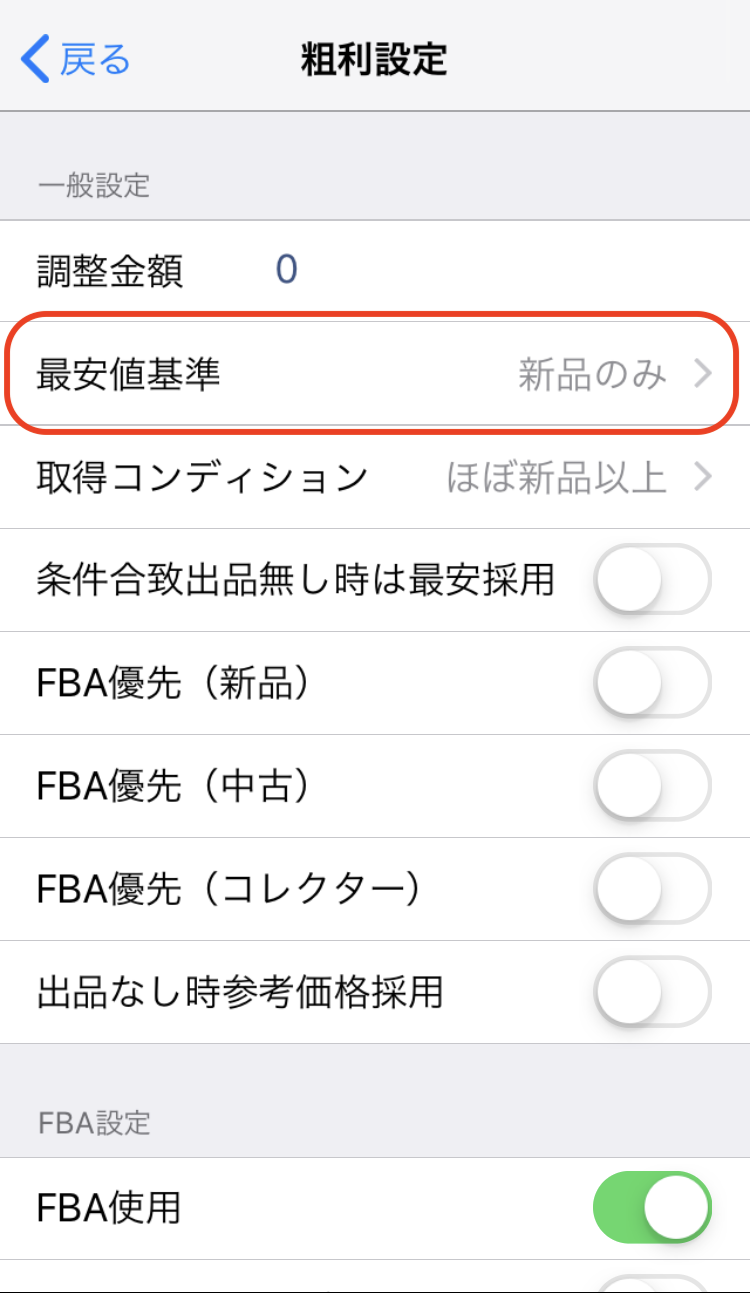 粗利計算設定では「新品のみ」に設定します。