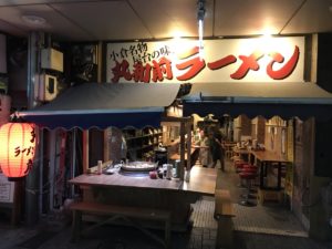 強烈な豚骨の匂いのラーメン屋さんがあります。