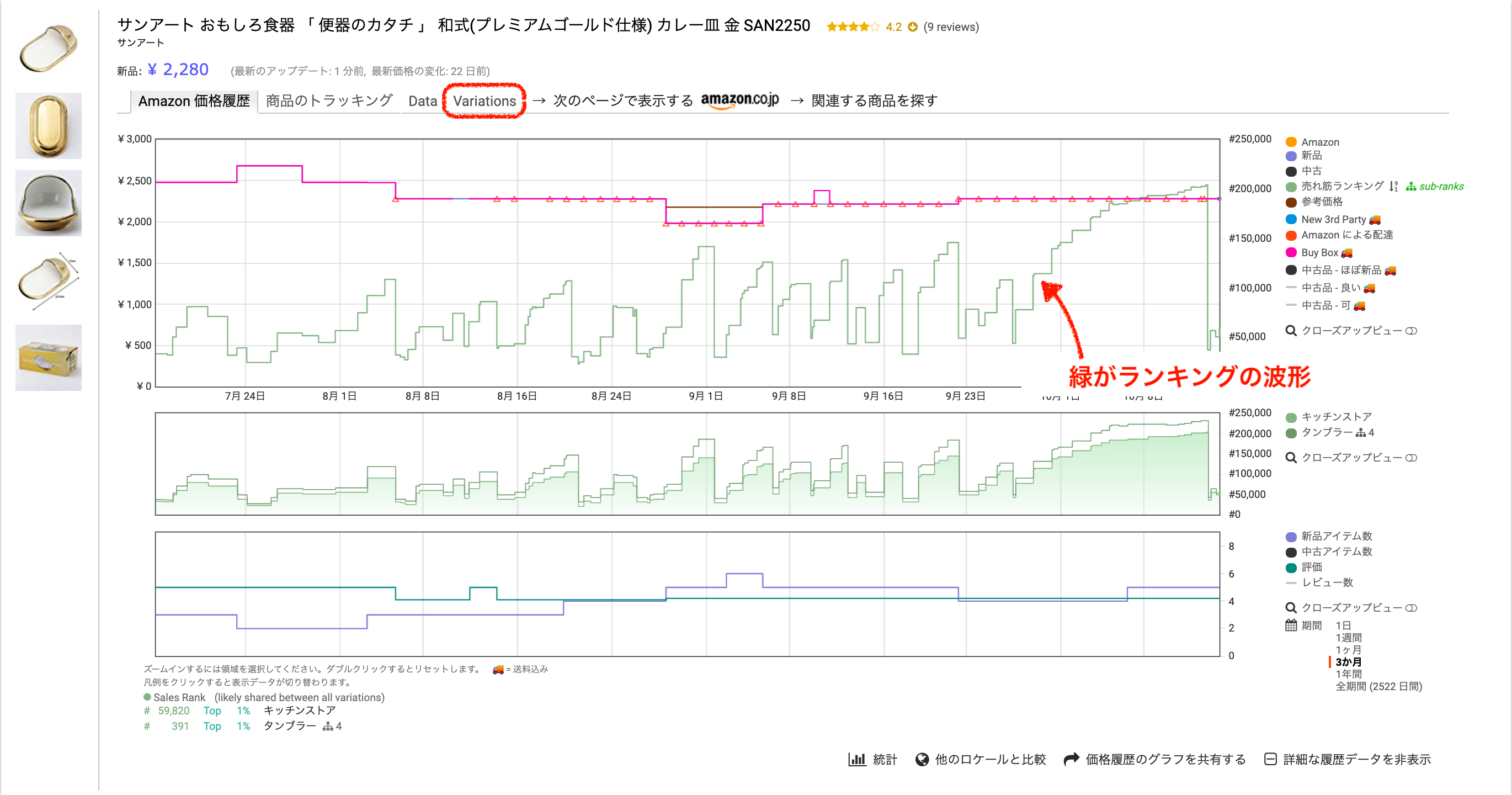 矢印の緑のギザギザがランキングです。