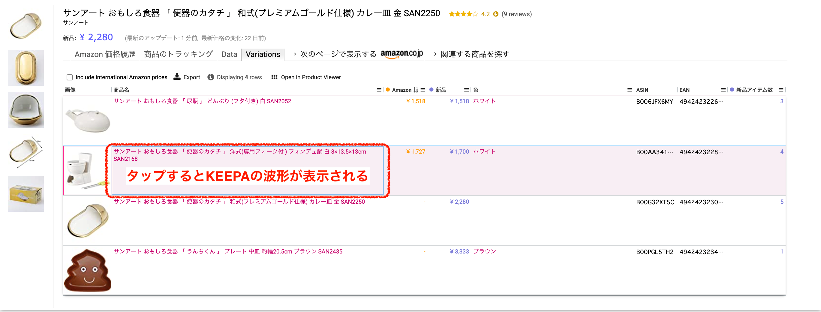 KEEPA以外の検索ツールでも見かたは同じです。