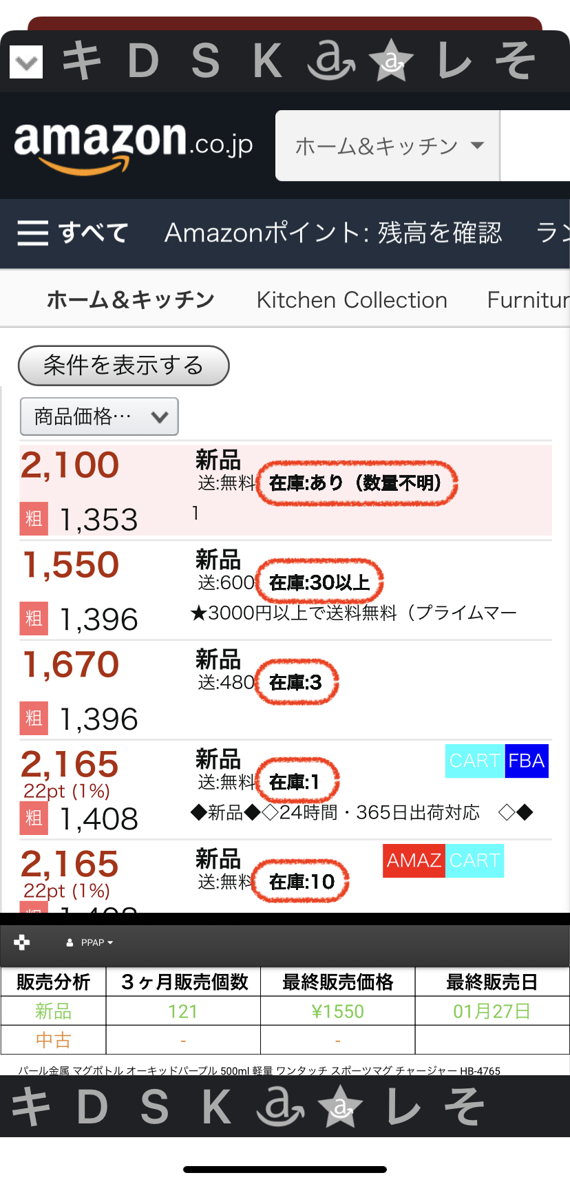 赤丸の箇所のようにライバルセラーの在庫が分かります。