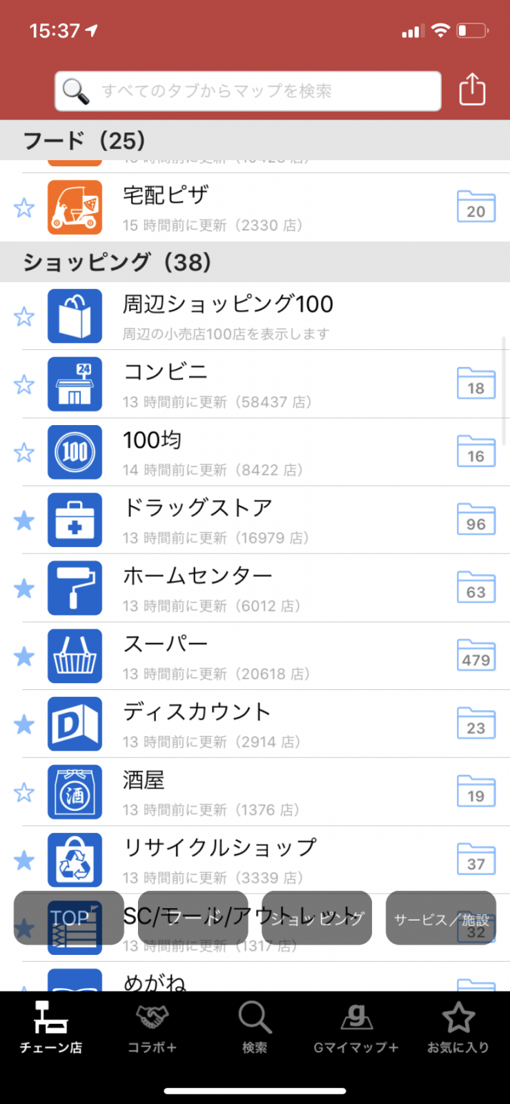 ジャンル別にチェーン店をピンで