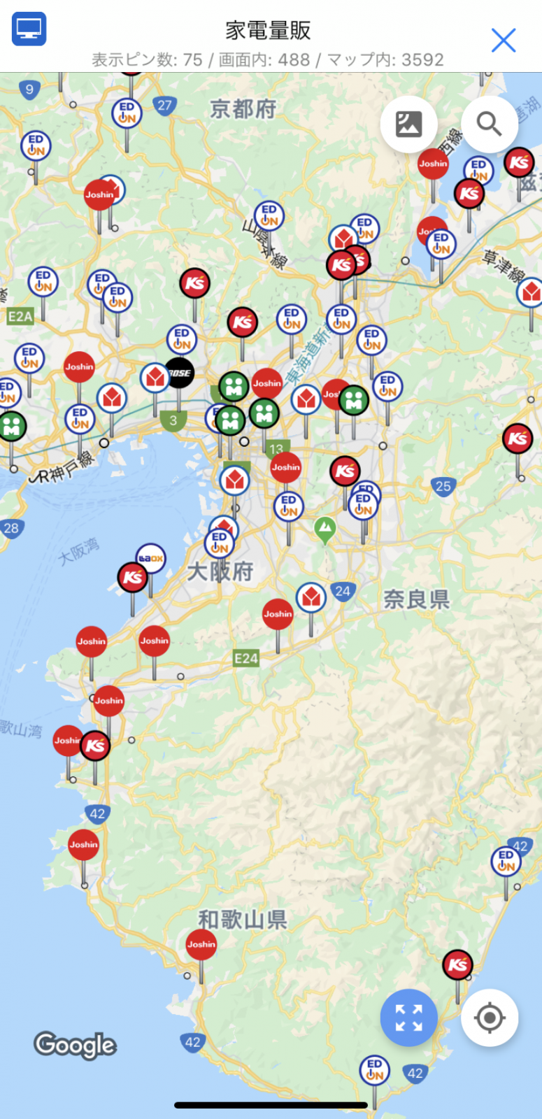 大阪あたりで家電量販をクリックしてみました。