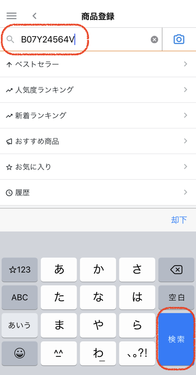 商品登録の検索窓に、