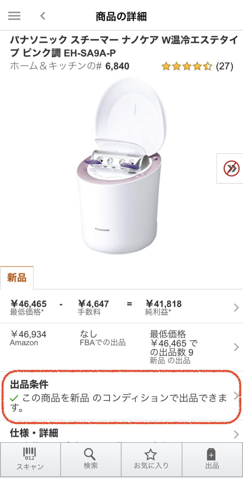 新品で出品できるかどうかは、セラーアプリを使うと便利です。