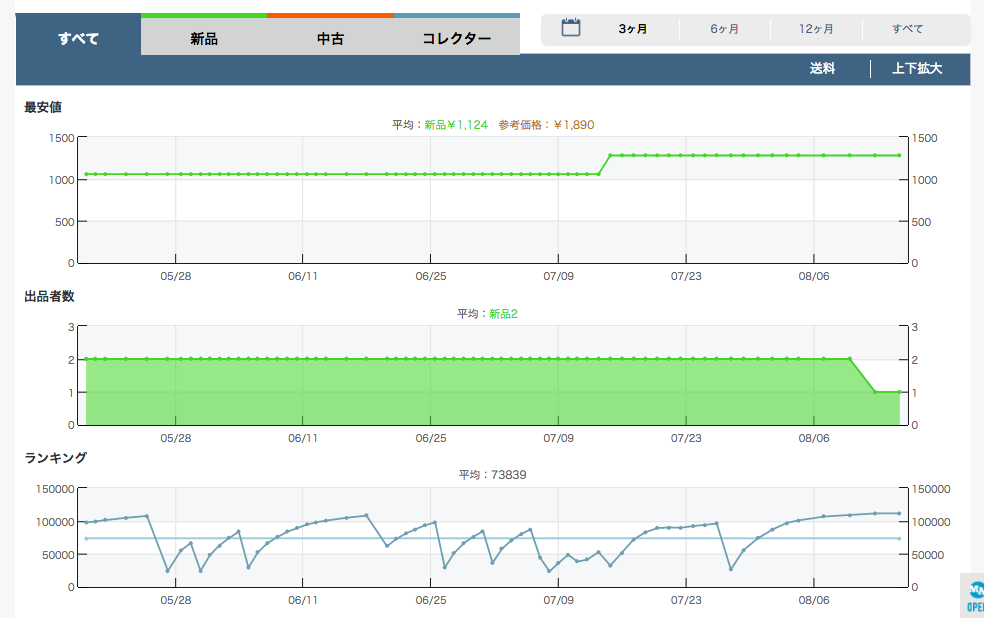 しかし、1280円に上がってからは月に1個しか売れていません。