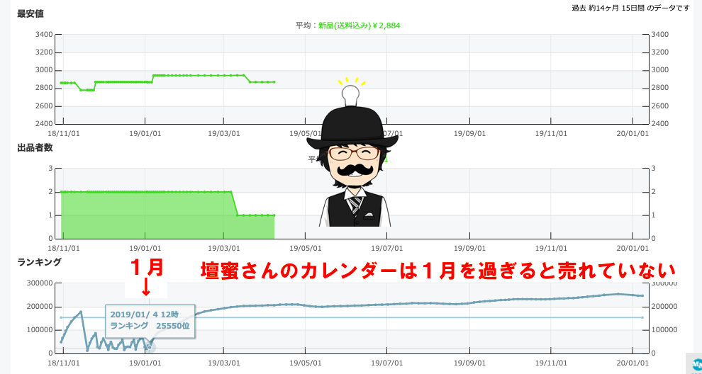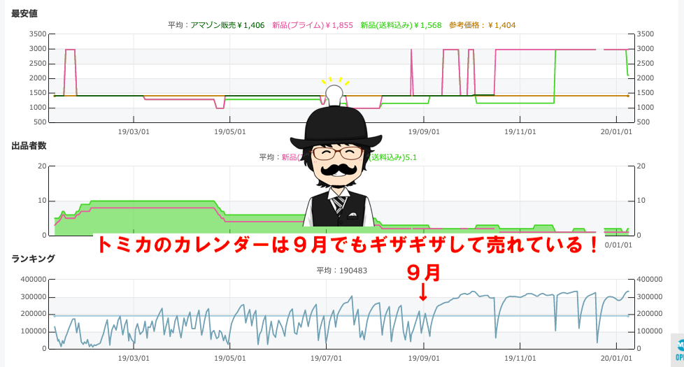 このカレンダーは9月でも売れているのが分かります。