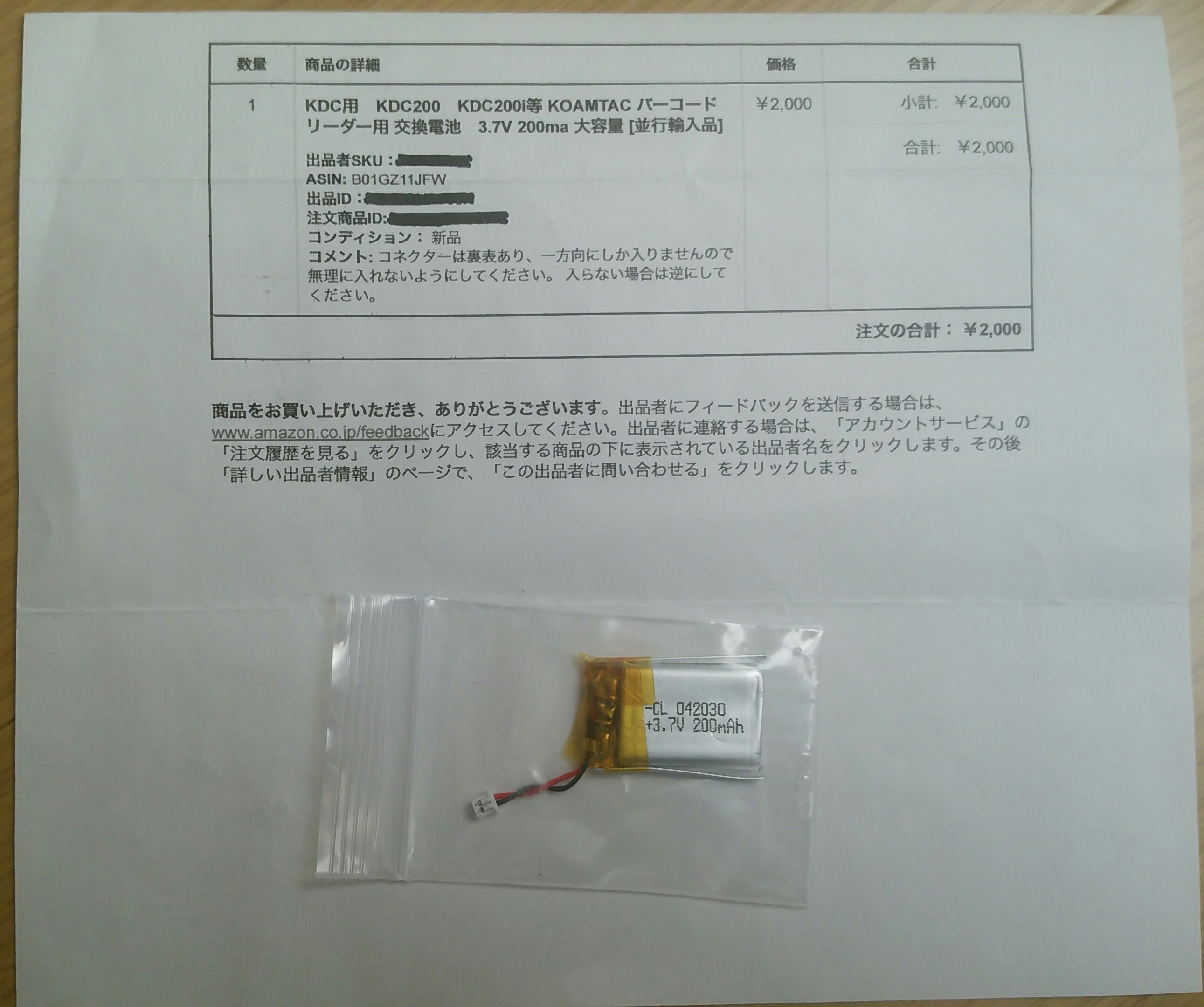 電池はアマゾンで購入しました。