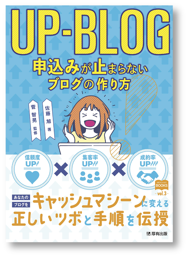 書籍「UP-BLOG (アップブログ)申込みが止まらないブログの作り方」の著者です。(↓画像をクリックできます)
