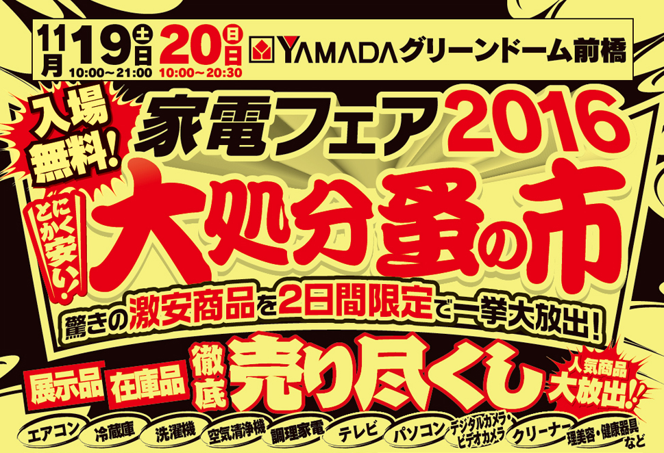 「家電フェア2016&大処分蚤の市inYAMADAグリーンドーム前橋」