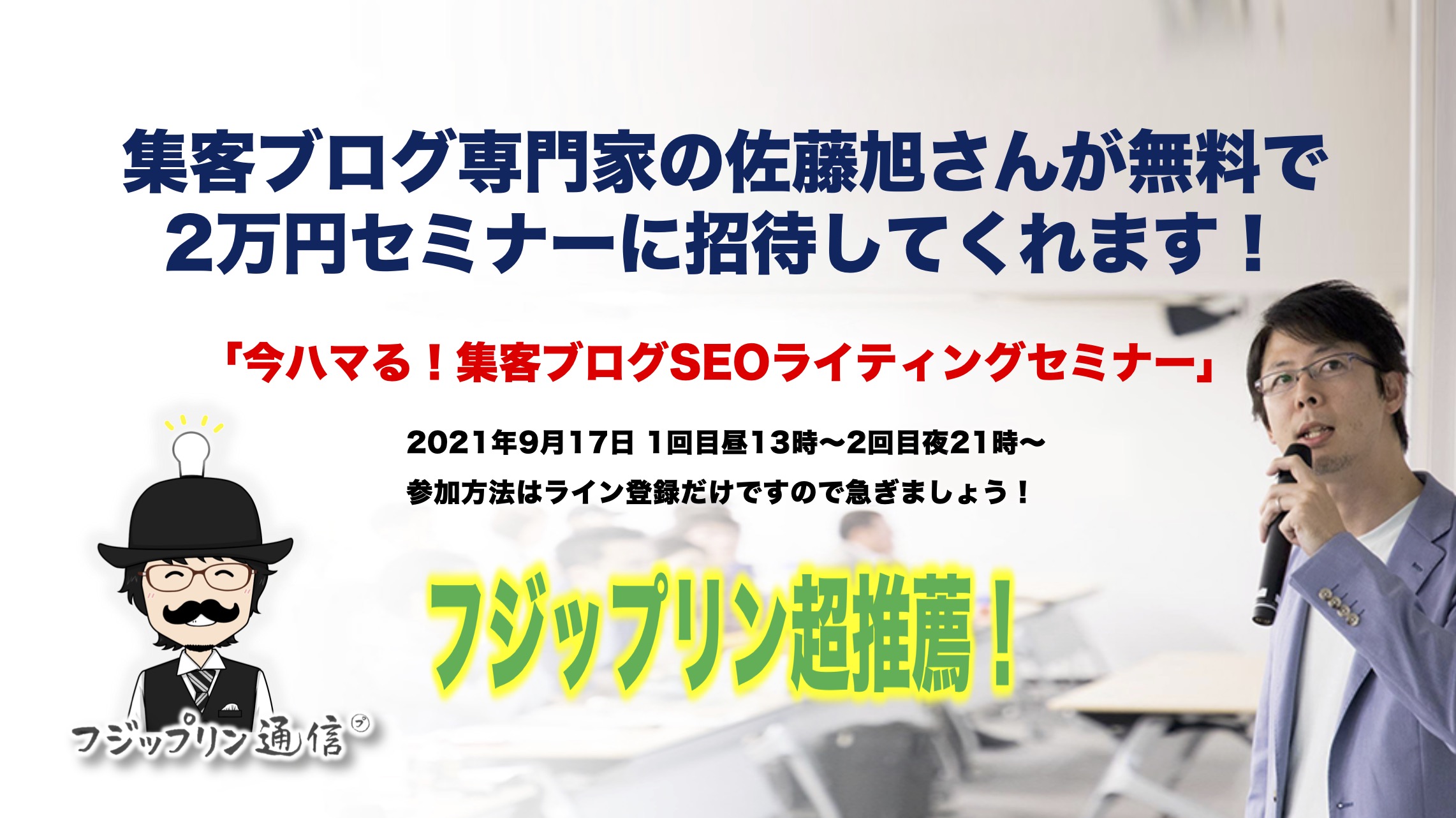 集客ブログ専門家の佐藤旭さんが、無料で2万円セミナーに招待してくれます!まとめ。