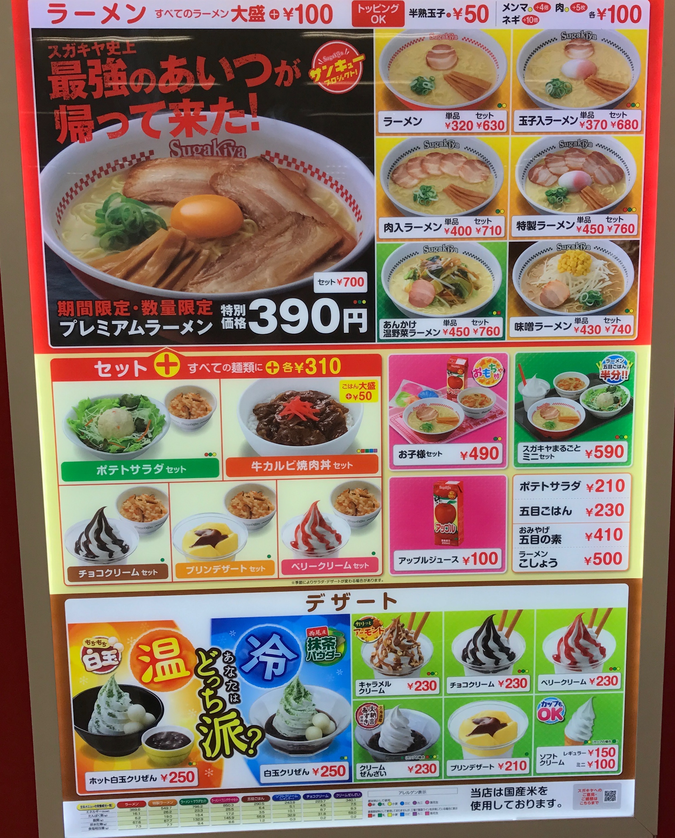 プレミアムラーメンで390円。