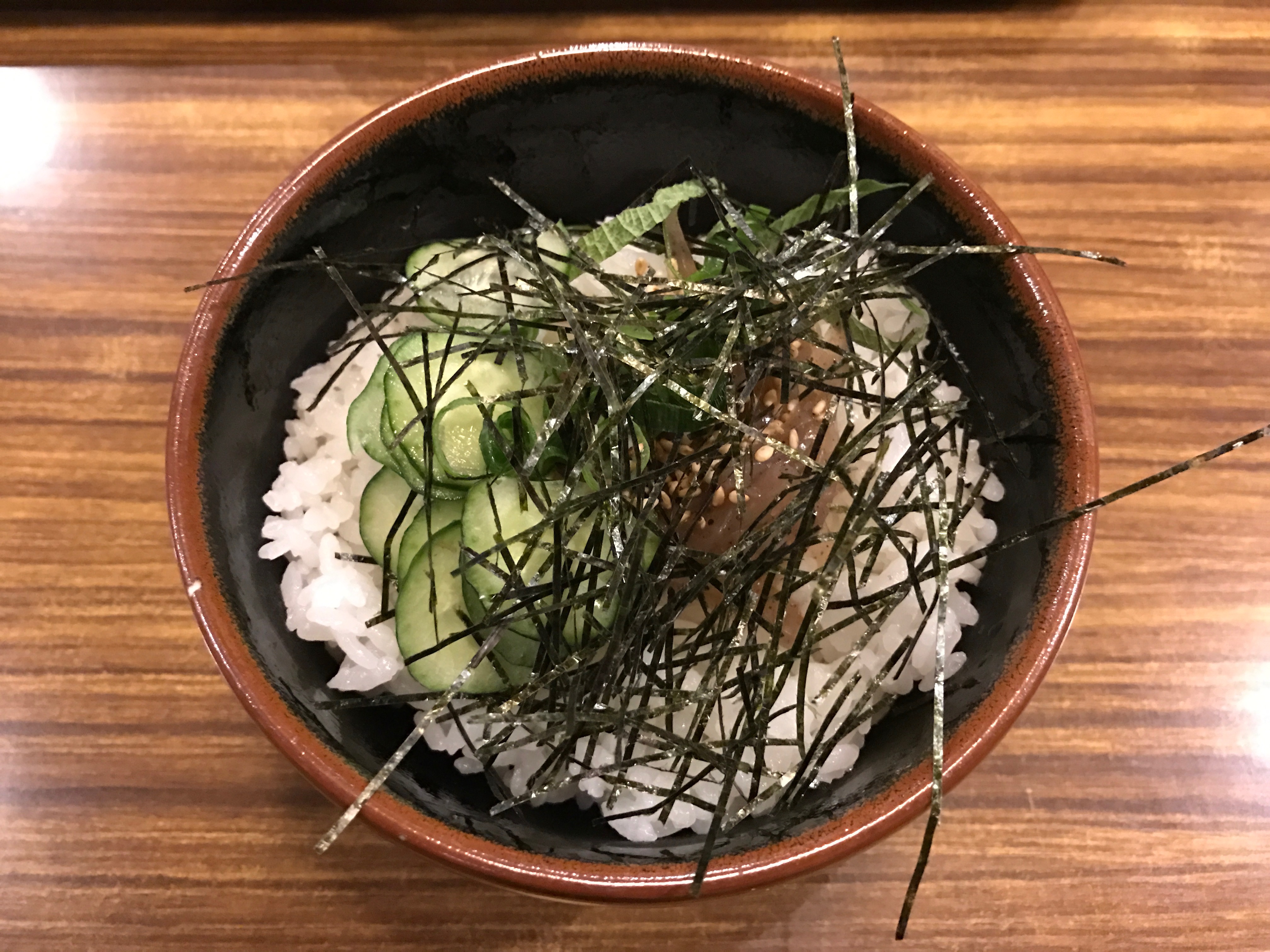 ご飯の上に、きゅうりのを乗せて、