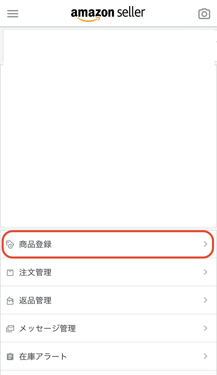 2.セラーアプリの「商品登録」をクリックして進みます。