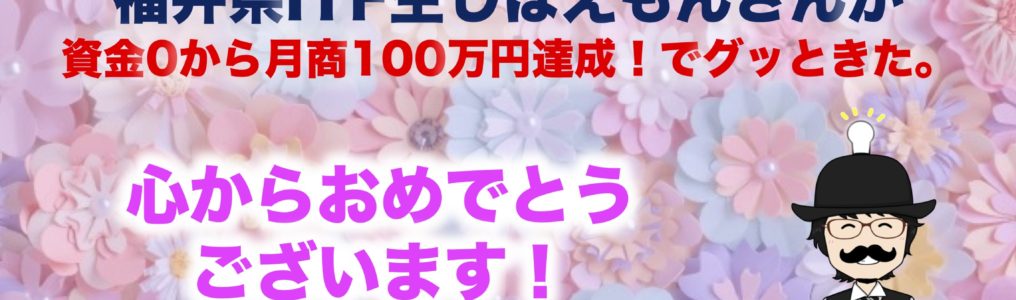 資金0から月商100万円達成!福井県ITF生しばえもんさんの報告にグッときた。