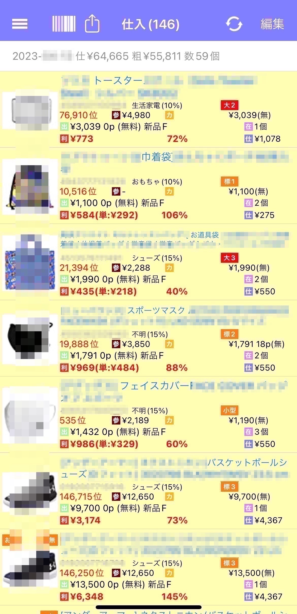 ・64665円仕入れ55000円の利益。