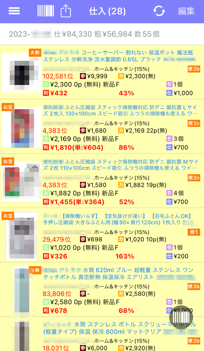 せどりすとプレミアム(せどりアプリ)のスクショです。