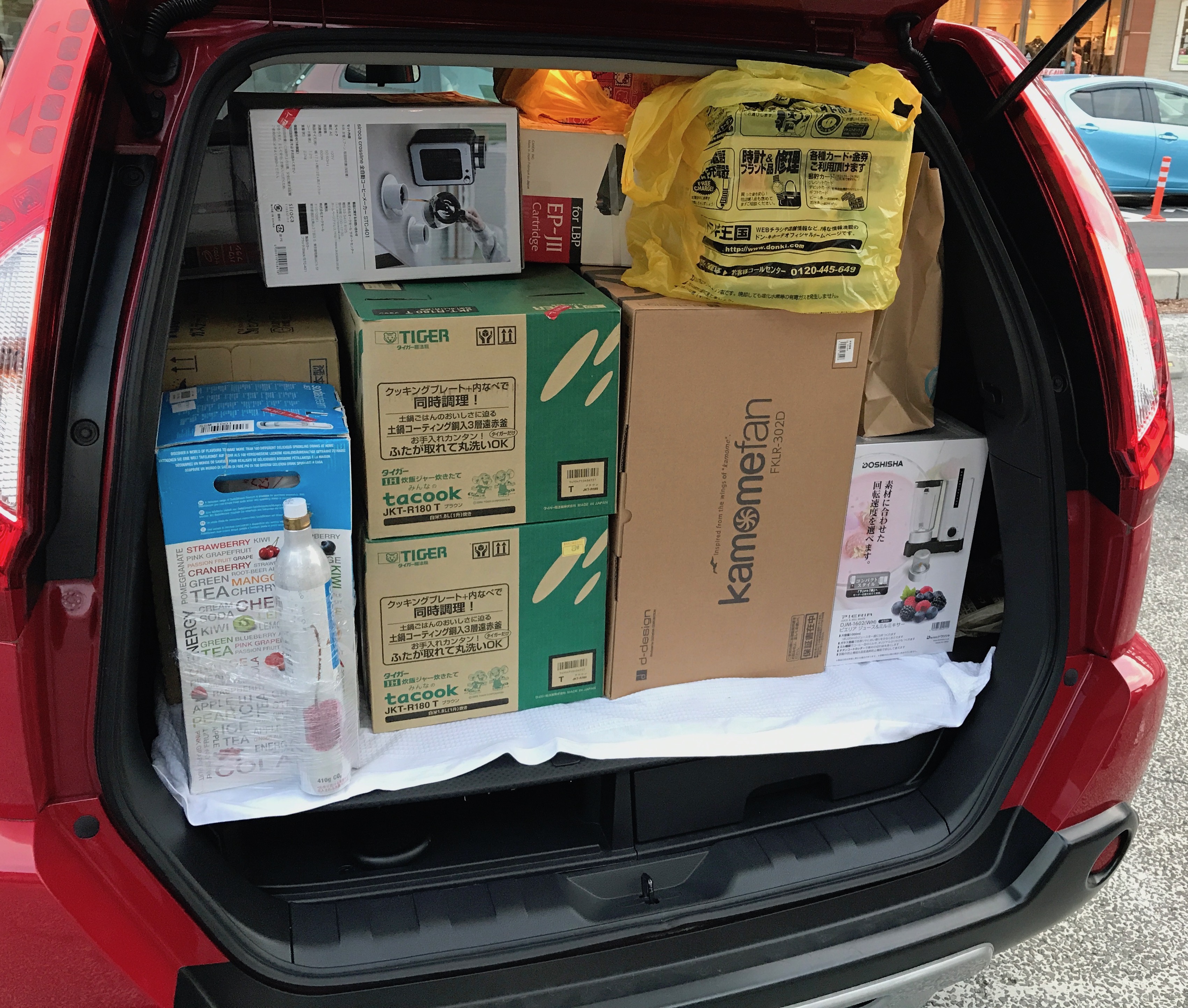 一日終わって車のトランクはこんな感じです。