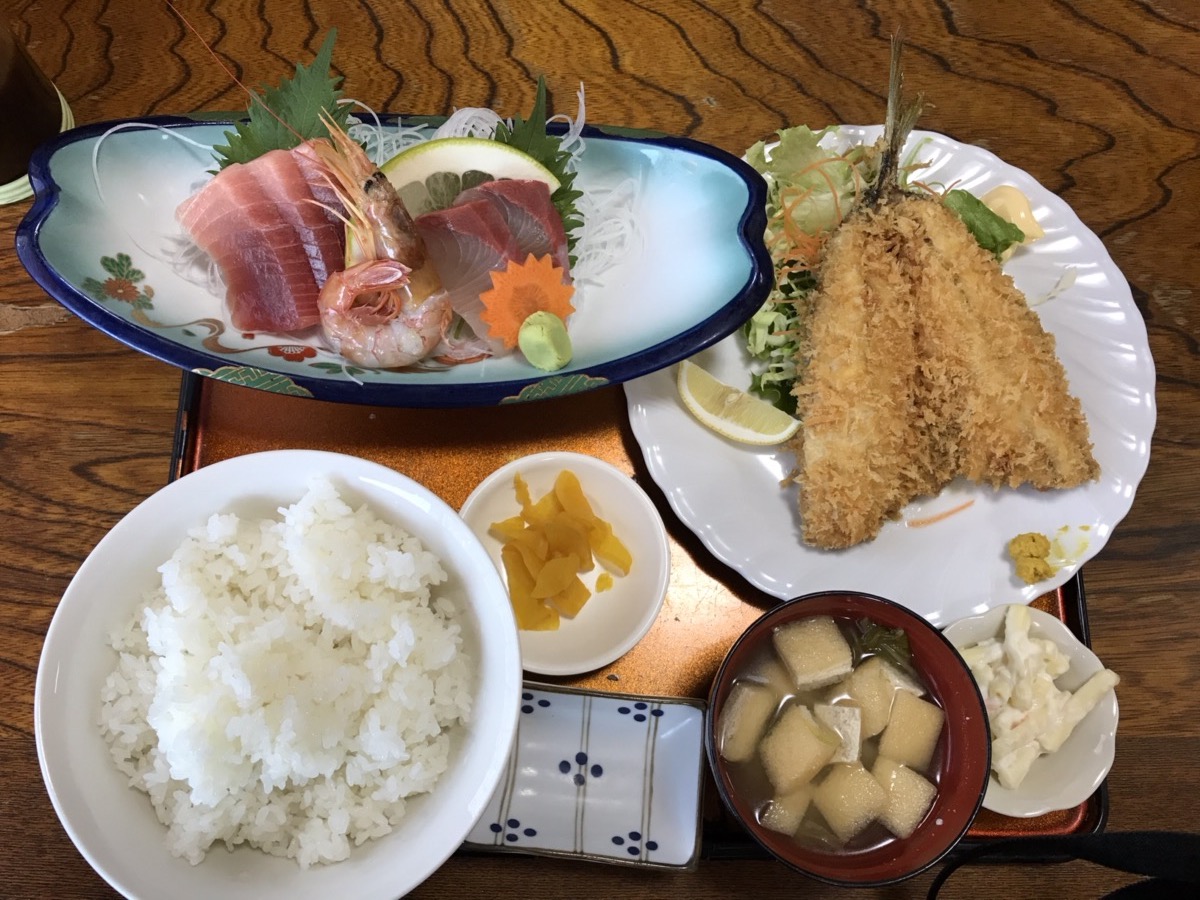 イワシフライと刺身付き定食に