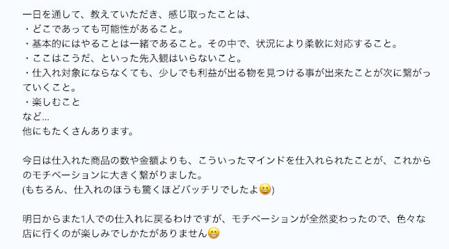 店舗せどりコンサルのレポートです。