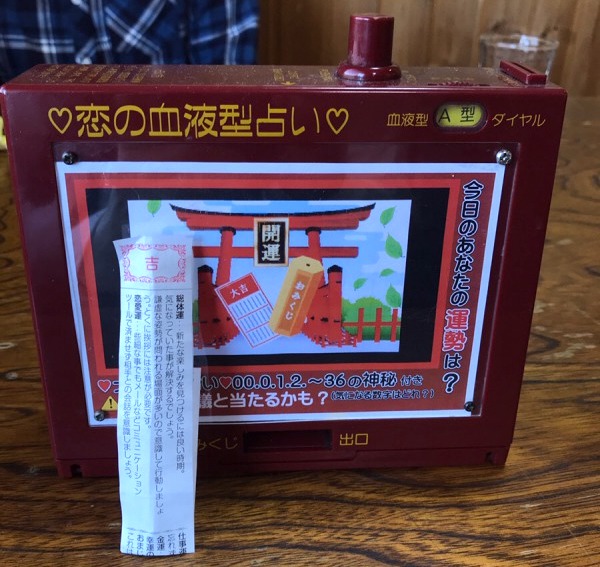 待っている間に、卓上でレトロな占いを発見。