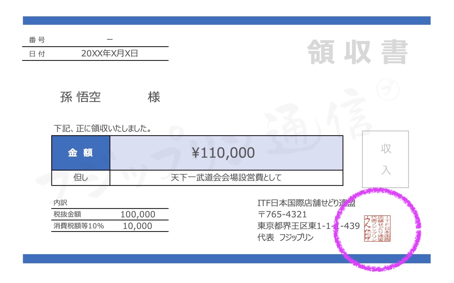 例「ITF日本国際店舗せどり連盟代表フジップリンの印」