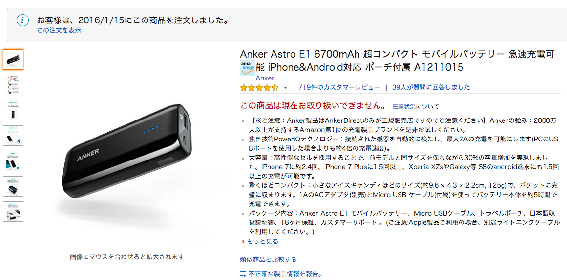 以前から紹介していたAnker社のモバイルバッテリーはアマゾンのカタログと実際に購入した商品の容量が違っています。