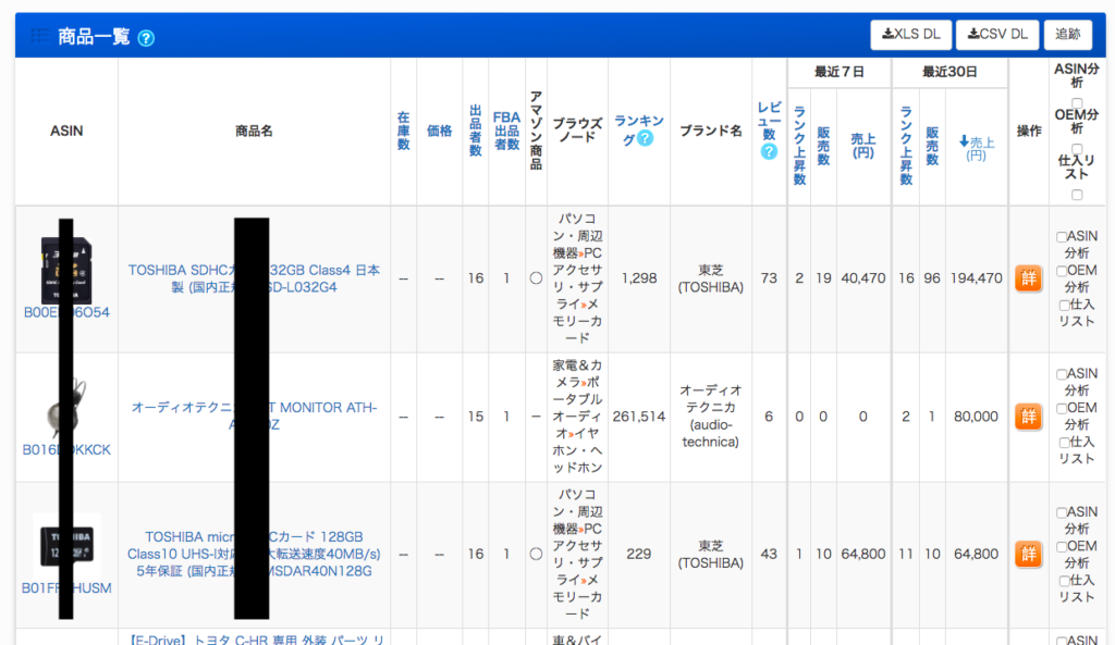 そのセラーが、どの商品をいくつ売って、売上がいくらか分かります。